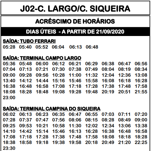 Novo Horário de ônibus J02 CAMPO LARGO / CAMPINA SIQUEIRA 2020 | Campo Largo PR - Horário de Ônibus viral