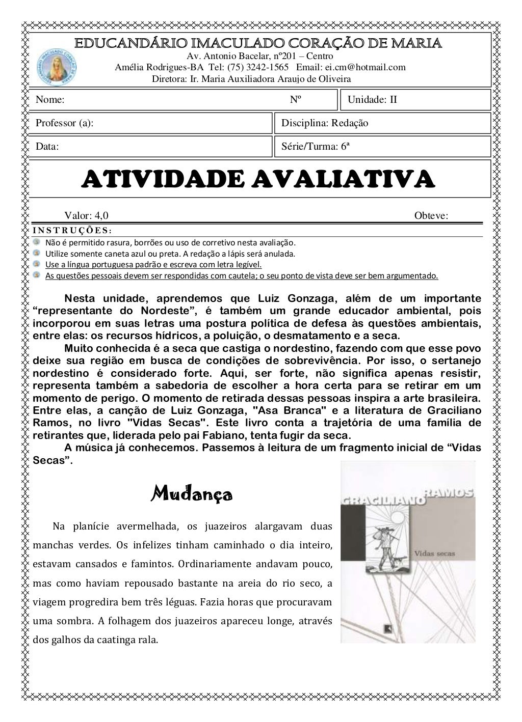Atividade Com Gabarito Sobre O Livro Vidas Secas - Resenhas de Livros atualizado